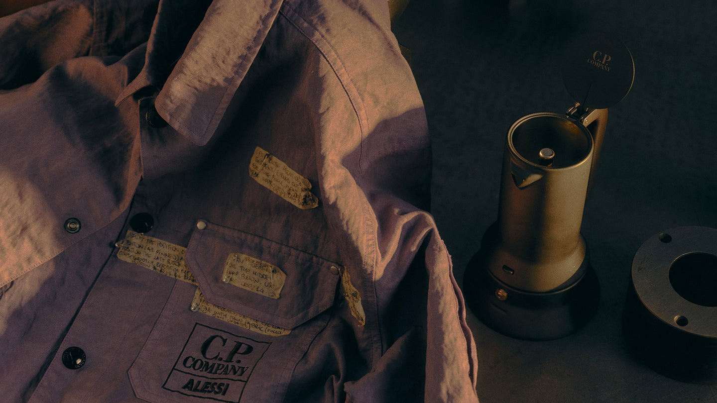 The Alessi - C.P. Company collection brings together a series of icons selected from their respective histories: the celebrated Overshirt and several objects related to coffee—a daily ritual that, in Italy, often accompanies the genesis of the most unexpected creative processes. Hence the selection of pieces such as the 9090 espresso coffee maker by Richard Sapper, the Arran tray by Enzo Mari, and the coffee cups and mug by Jean Nouvel.
