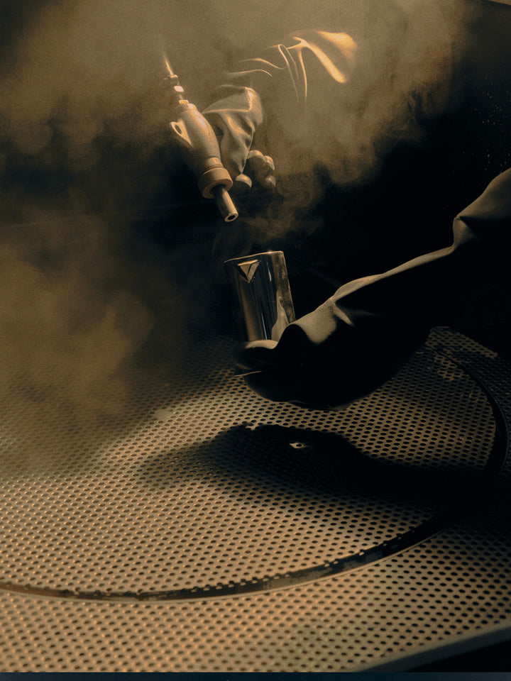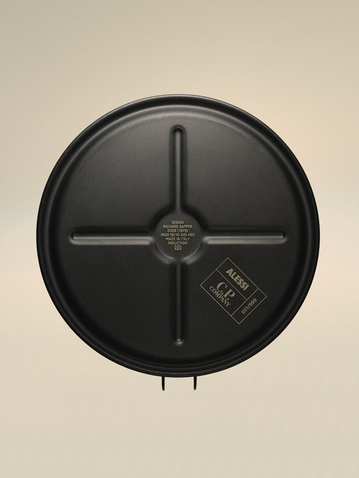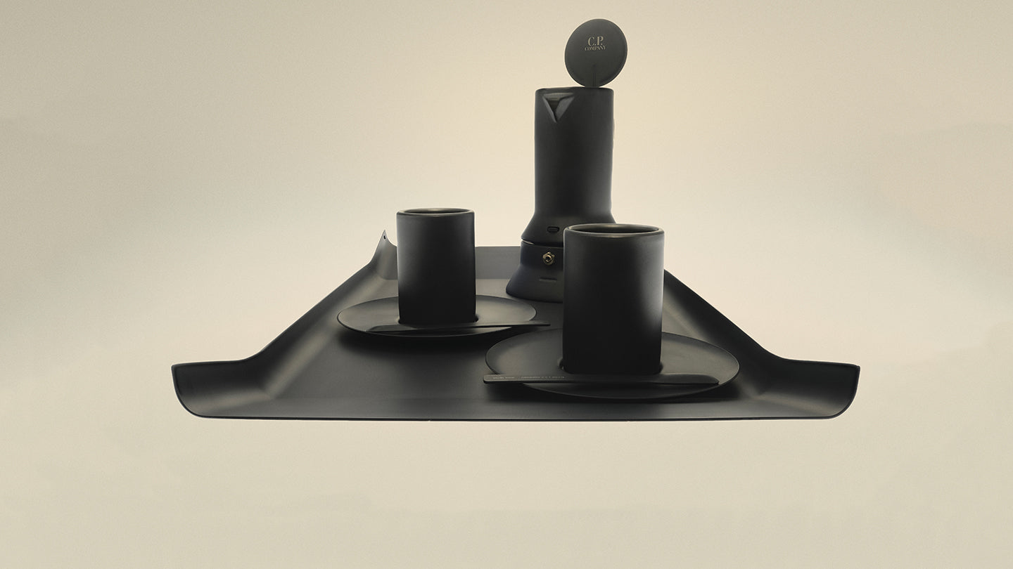 A reinterpretation of industrial design icons through the C.P. Company language. The collection includes the Moka 9090 in a limited edition (999 numbered pieces), the tray, and the cup set. Each object results from a process that combines international production with finishes made in Italy, such as sandblasting and PVD treatment.