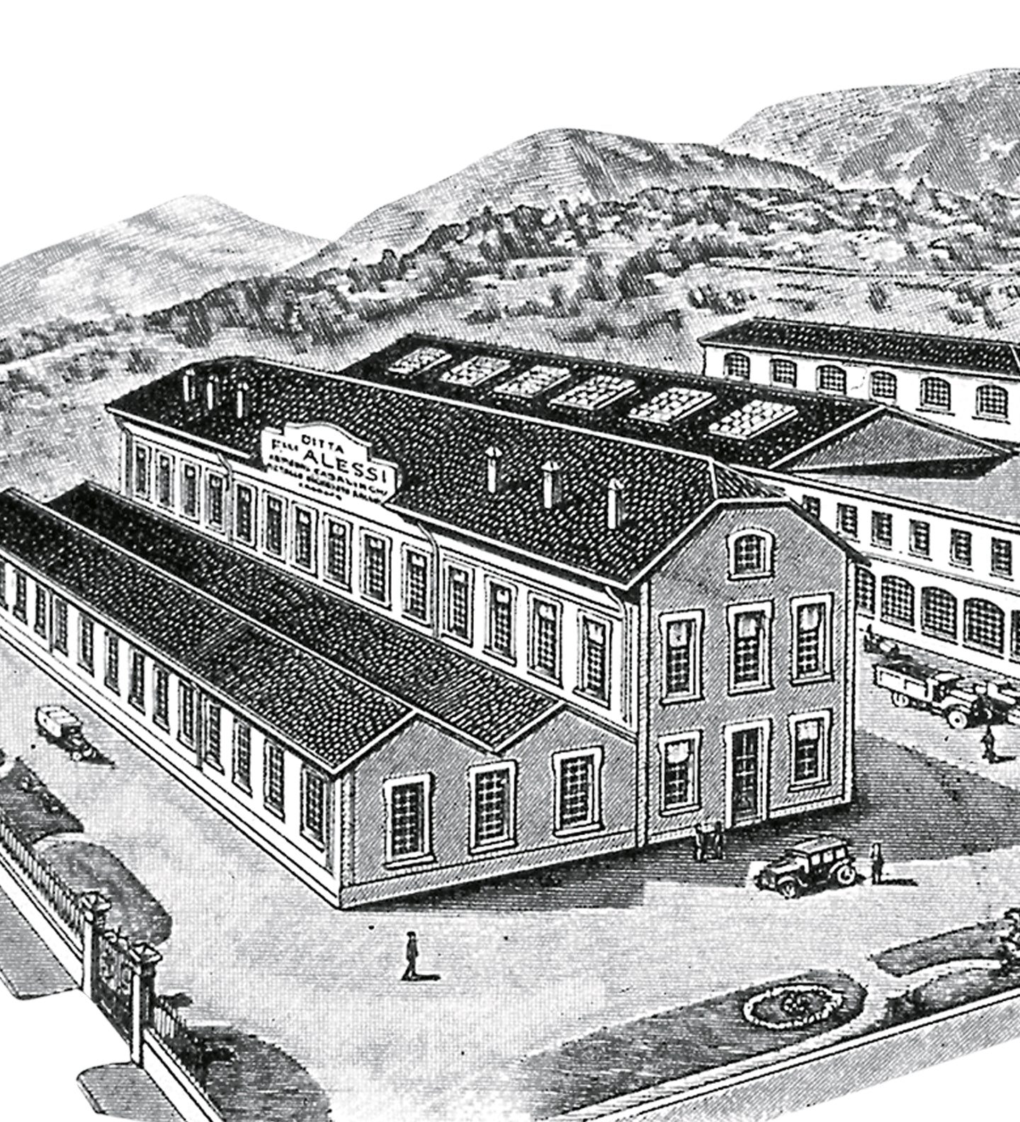 In 1921, Giovanni Alessi and his brother founded Fratelli Alessi Omegna - FAO, a “Workshop for processing brass and nickel silver sheet, with a foundry”. FAO’s first production was inspired by the dictates of the most prestigious manufacturers of objects for the home of the early 20th century, particularly those from Austria and England. Giovanni was obsessed with quality and skilled craftsmanship: his products made of copper, brass and nickel silver, which were subsequently plated with nickel, chrome or silver, became immediately renowned for their meticulous crafting and perfect finish.