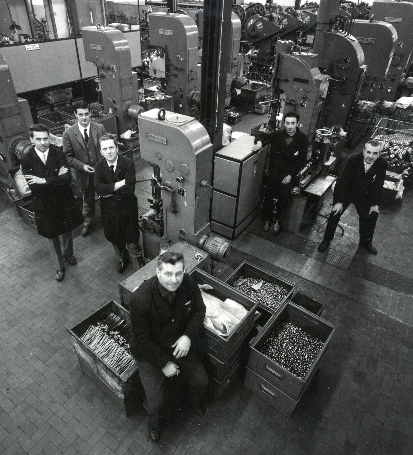 The company gradually abandoned the use of soft metals in the '50s, replacing them with stainless steel, transforming production from artisan to industrial. A sign of change with a new name: ALFRA (ALessi FRAtelli). During these years, the company specialised in the production of objects for professional use (for hotels, restaurants, bars, etc.). Carlo Alessi, the founder’s eldest son, took over from his father at the company helm. His brother Ettore, who had joined the company in 1945, became head of the Engineering Department, consolidating its design identity: it was at this time that certain “industrial types” of product like baskets and fruit bowls made of steel wire were created. Led by him, ALFRA also began working in partnership with independent designers.