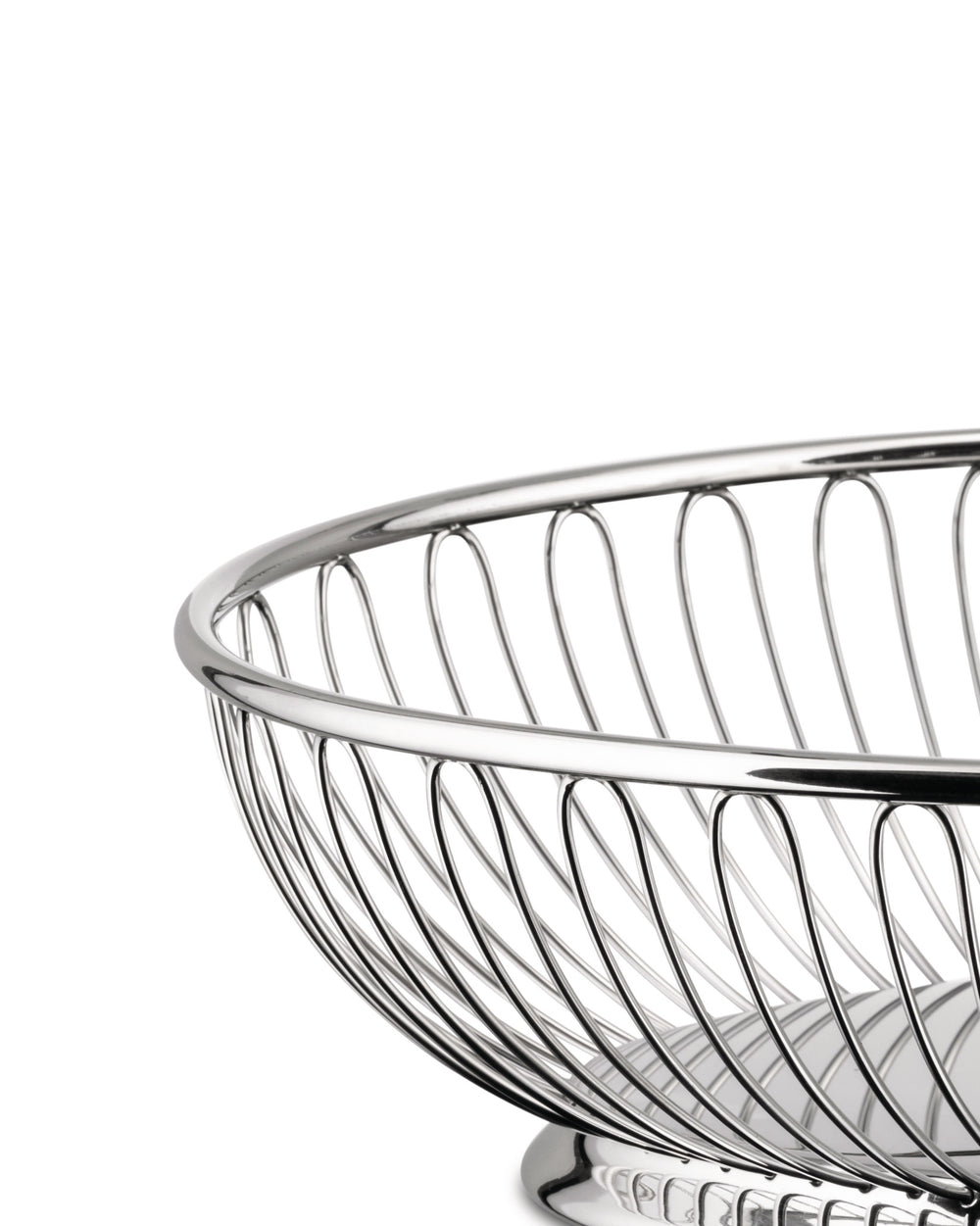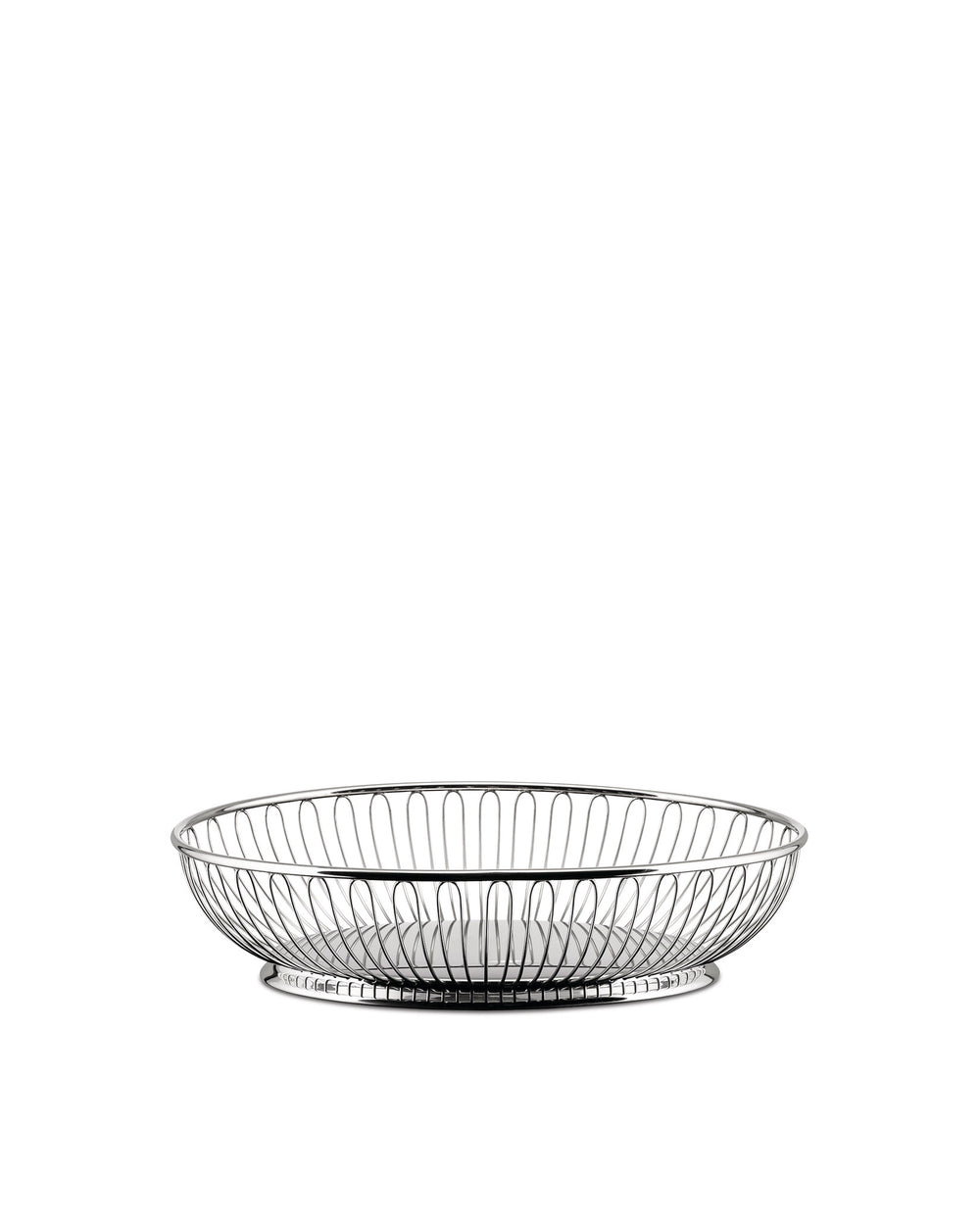 In the late 1940s, after the wartime hiatus, the design activities of the Alessi Technical Office resumed. The research in wire products led in 1948 to the production of the 826 round basket, followed in 1955 by the oval version and in 1966 by the square version. The simplicity of execution of these baskets is matched by a refined formal result. Their success is remarkable: they offer a more modern and dynamic alternative to the still popular silver baskets, suitable for both curated and informal tables, anticipating the contemporary taste for refined minimalism.