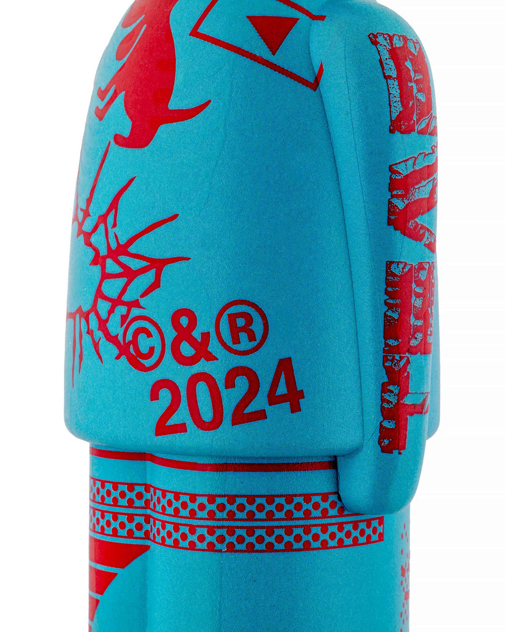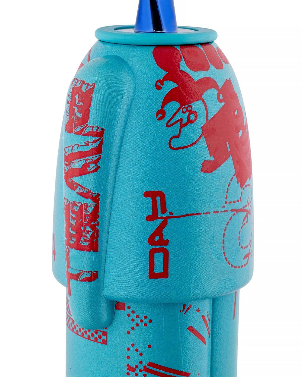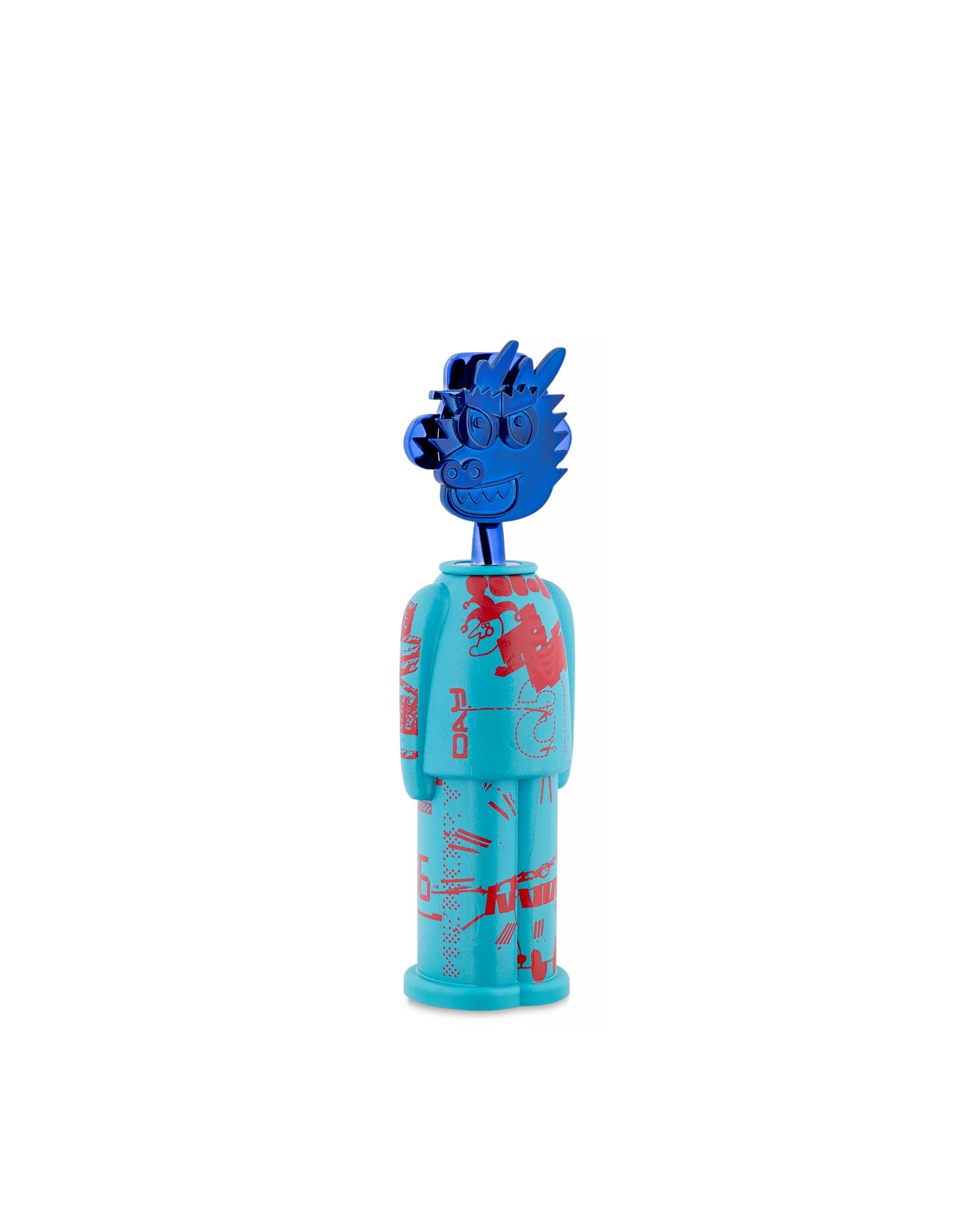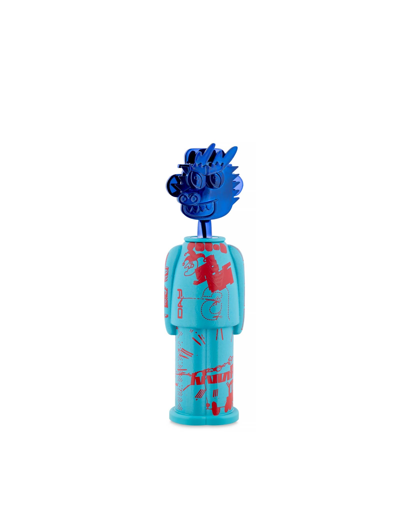 Studio Temp draws from the deep well of street art to offer a contemporary and cryptic interpretation of the iconic corkscrew designed by Alessandro Mendini, produced in a limited edition of only nine pieces plus one artist’s proof. The decoration includes phosphorescent elements that become visible only in the dark and is enhanced by a blue PVD finish on the metallic surfaces, along with a special mask: a dragon, a reference to an iconic self-portrait by Mendini.