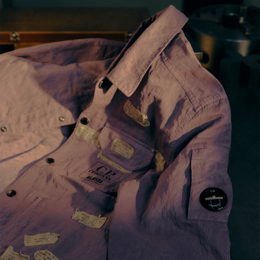 These garments are born from a design adventure that began in the Alessi and C.P. Company historical archives. An iconic model, the Overshirt is distinguished by its garment dyeing: the fabric is colored after the garment is completed, bestowing deep nuances and a unique character to every piece. The collection’s colors are derived from the hues of the machinery in the Alessi workshop and the textile palette of C.P. Company. A reinterpretation of a classic, a story to be lived and worn.