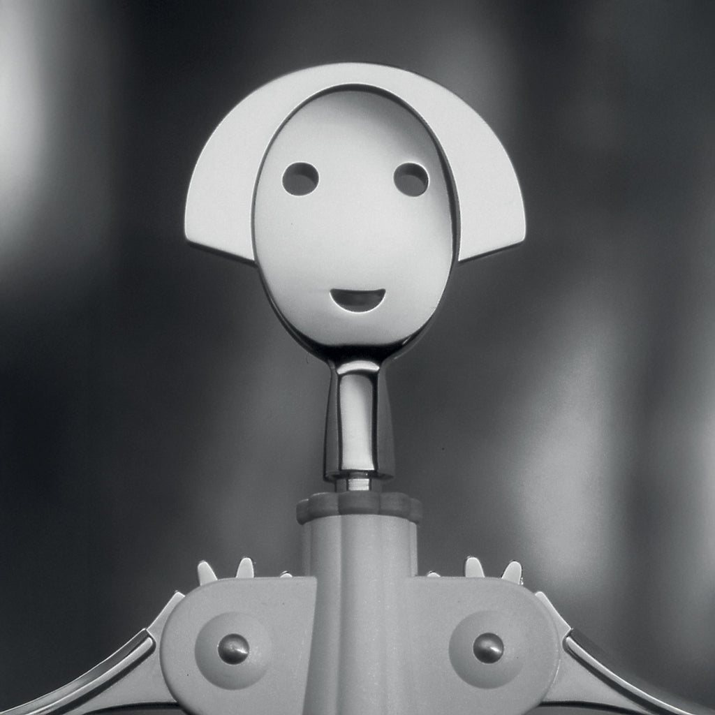 A best seller since it was first produced in 1994, the Anna G. corkscrew is a tongue-in-cheek homage to a real woman. Her smiling face has become something of a cult figure over the years, giving birth (so to speak) to a rich family of objects for the table and kitchen in a wide range of materials.