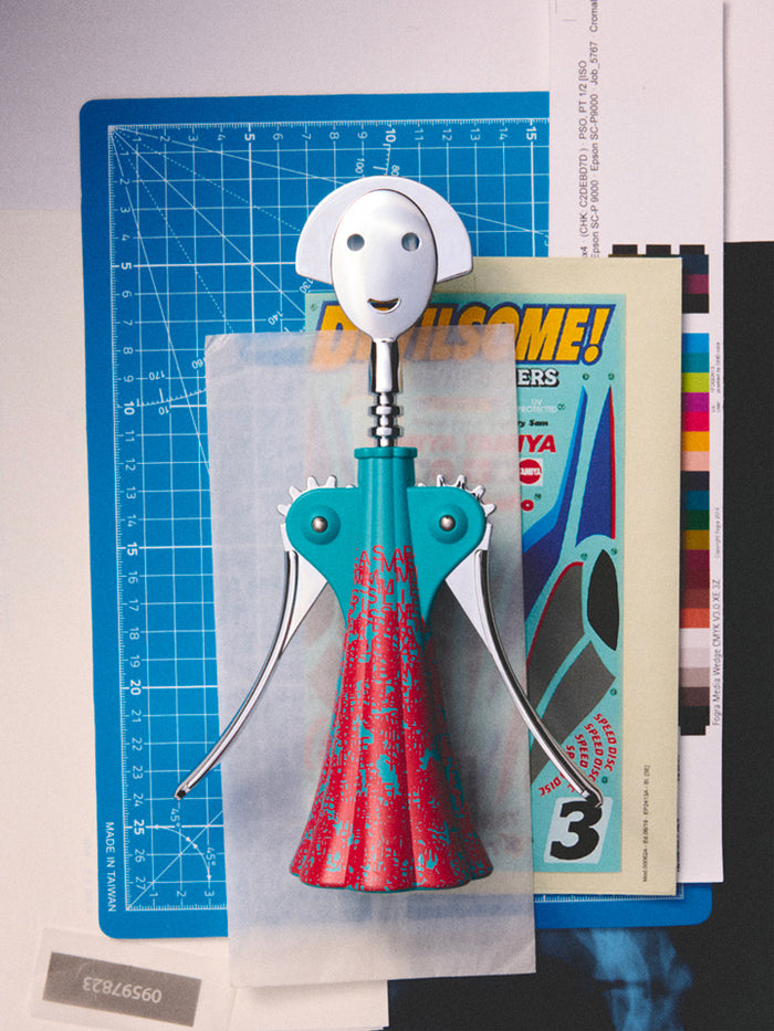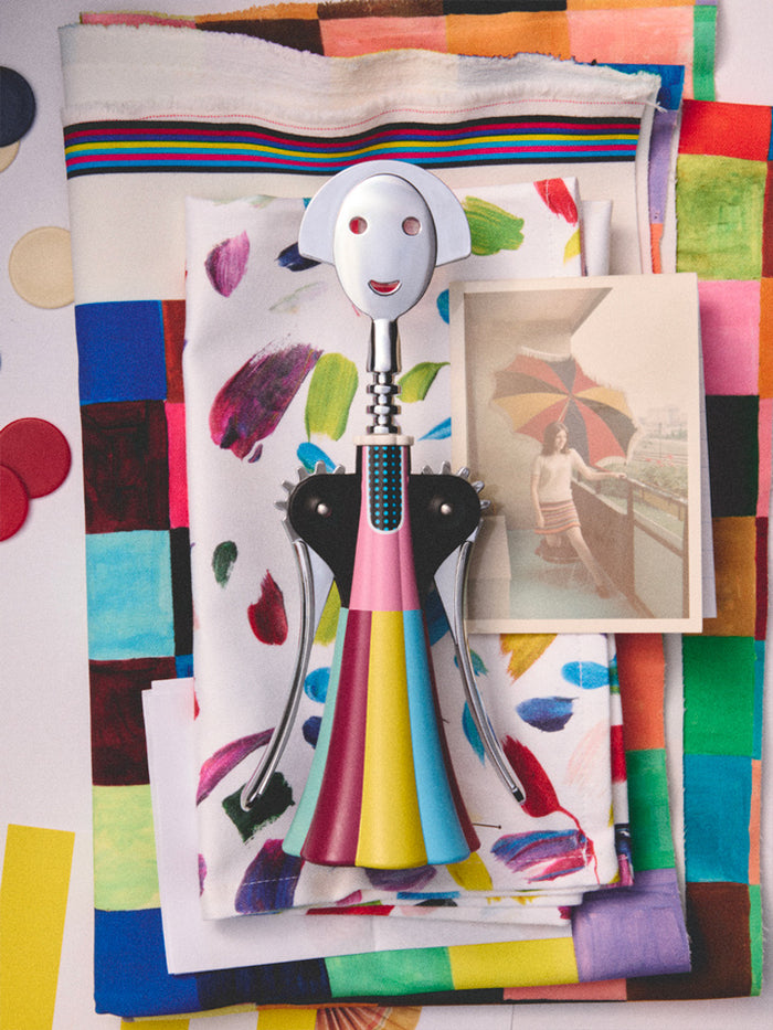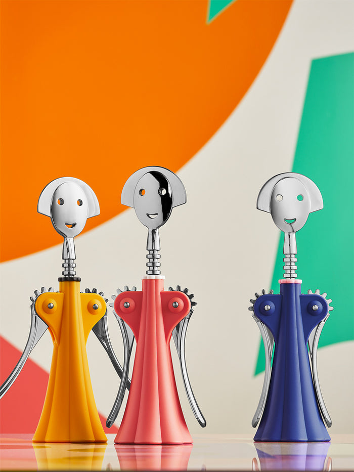 "I remembered when as a child my grandmother would open the wine bottle at the table, it had always seemed like a beautiful performance, a kind of ritual ballet: the head turning, the arms rising and falling [...] I decided then to create an anthropomorphic object. I drew a ballerina." This is how Alessandro Mendini recounts the birth of the Anna G corkscrew. It was Alberto Alessi who noticed, while observing the design, the resemblance to a designer friend of Mendini's: "It is evident that subliminally I had portrayed Anna," the author acknowledged, "she had been the inspiration."