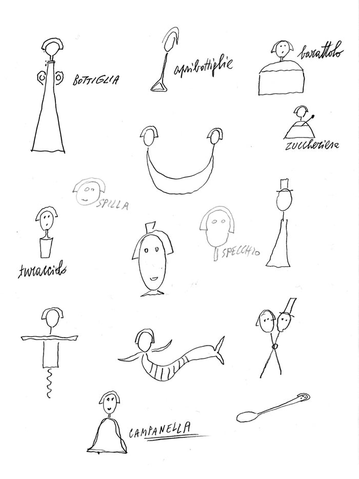 Drawing by Alessandro Mendini for the 20th anniversary of Anna G.