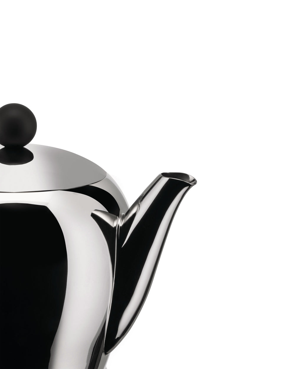Described by Alessandro Mendini as "the signature object of Alessi production," the Bombé service has a curious origin: Carlo Alessi designed it for his engagement to Germana Bialetti, daughter of the Moka inventor. During their courtship, the two used to sip tea in Bialetti's home under the watchful eye of the future mother-in-law. So when Carlo asked for Germana's hand in marriage, he thought of giving her a domed service, like the family's, but in a more modern material than porcelain. A tribute to the fiancée - and perhaps also a clever move to win over the father-in-law.