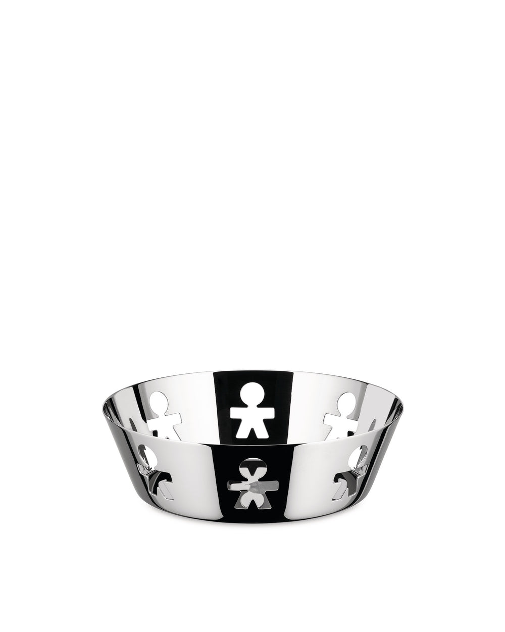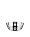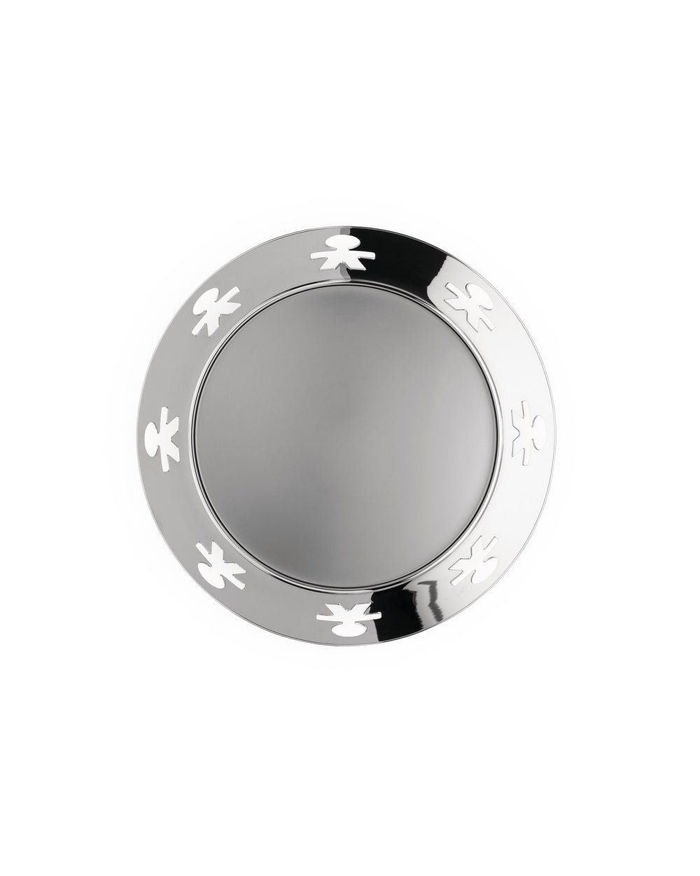 A symbol of the strand of playful design based on the use of affective codes, an excellent example of being rooted in childhood memory, the little man motif debuted by decorating perhaps the most traditional object for Alessi, the tray, and then expanded into the catalog. The choice of the fretwork design was a hard-fought one: from a variety of possible anthropomorphic outlines, the final shape emerged thanks in part to the inadvertent advice of Giovannoni's trusted stationer who, when confronted with three alternatives, clearly pointed to the one that would later become the iconic little man.