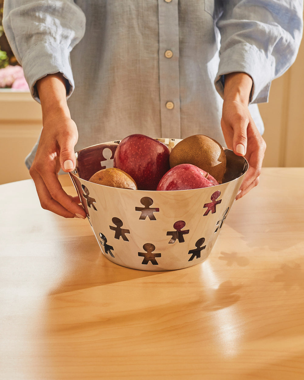 The cartoon men created by the King-Kong team are a symbol and icon of mirror polished design based on the use of "affective codes", so much so that they are one of its most oft-cited examples. The "standing men" have appeared on objects from the farthest corners of Alessi tradition, like trays and baskets, and then they multiplied, invaded and conquered other groups of objects - and not just in the kitchen and at the table.