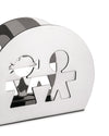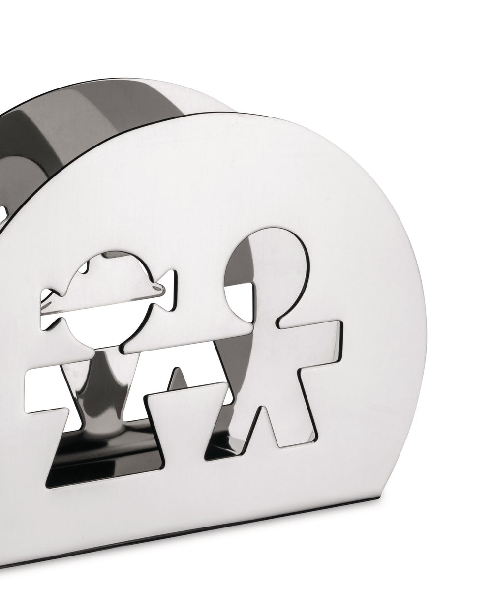 A symbol of the strand of playful design based on the use of affective codes, an excellent example of being rooted in childhood memory, the little man motif debuted by decorating perhaps the most traditional object for Alessi, the tray, and then expanded into the catalog. The choice of the fretwork design was a hard-fought one: from a variety of possible anthropomorphic outlines, the final shape emerged thanks in part to the inadvertent advice of Giovannoni's trusted stationer who, when confronted with three alternatives, clearly pointed to the one that would later become the iconic little man.