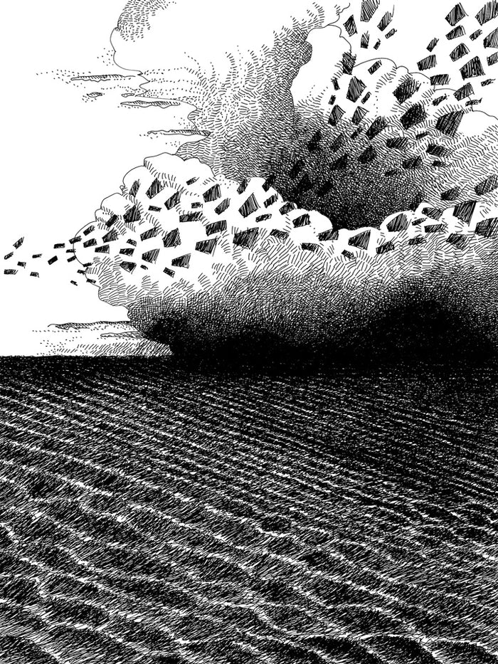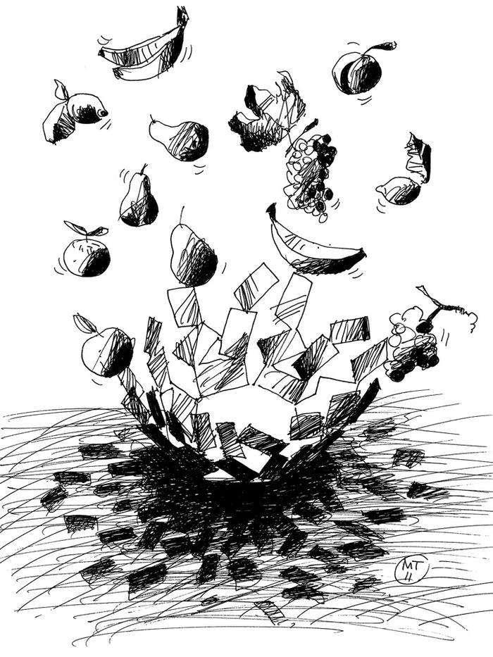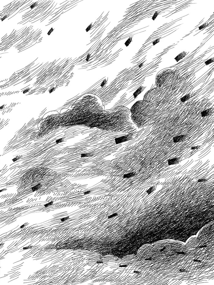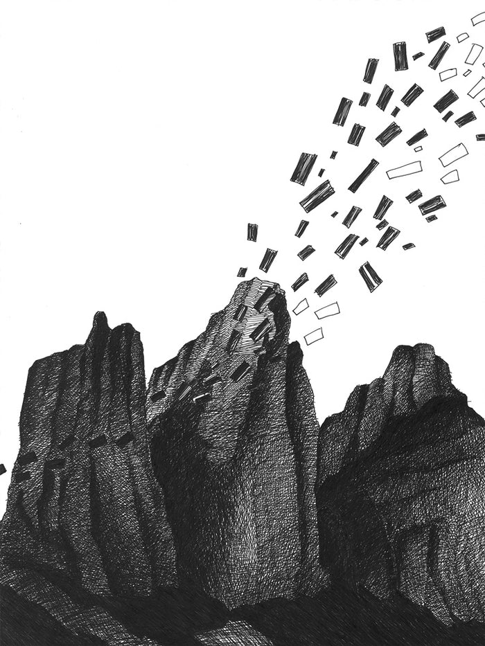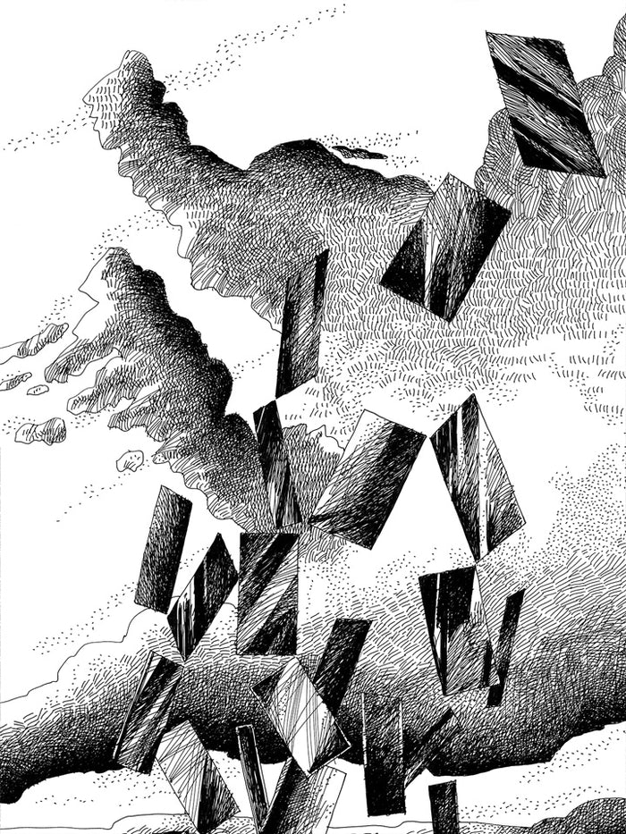 La Stanza dello Scirocco comes to life in the abstract, still atmosphere of a magical place: the room where people were forced to stay to shelter from the mugginess, in the big, old country houses in Sicily, waiting for the "sirocco" to subside. A room without windows, where children passed the hours building fragile castles of cards, their thoughts drifting to the wind beyond, where the world’s things were set in disarray. The result is a collection of objects with irregular geometries, composed of small splinters of different sizes, joined together by points in unstable equilibrium.