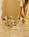 La Stanza dello Scirocco” is a range of items suitable for different rooms, such as the kitchen and the living room born out of the abstract and motionless atmosphere of a magic place: the room in large Sicilian country homes where one is forced to seek shelter from the sultriness while waiting for the scirocco to die down. The upshot is a collection of geometrically irregular items made up of small splinters of various sizes, interlaced in an unstable balance.