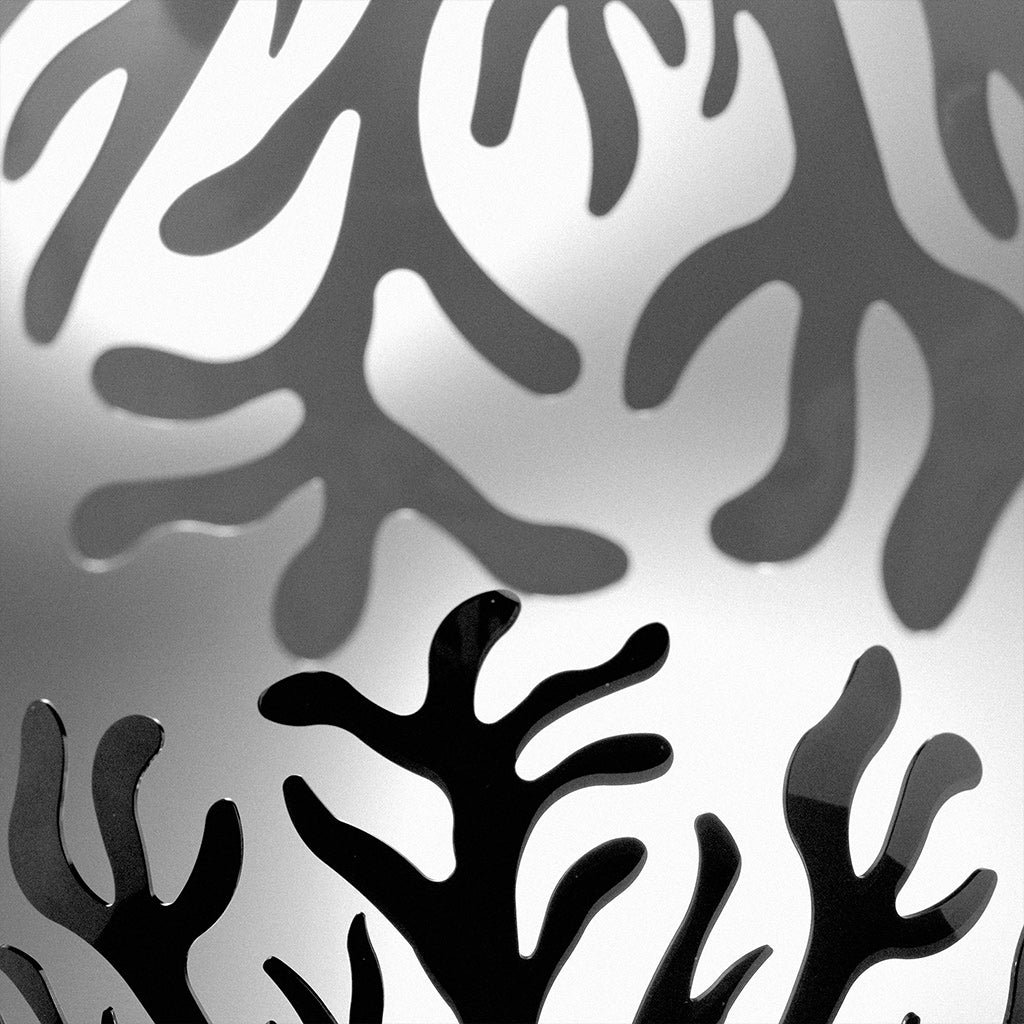 The Mediterraneo decor was born in 2004 during Lightness of Steel, a design workshop curated for Alessi by Laura Polinoro (LPWK). Participants were asked to reinterpret steel in objects that did not communicate physical solidity, and to draw on imagery related to the biological, organic and natural world, which has always been a powerful evocative force when used in objects. Sheet metal fretwork emerged as an ideal way to infuse steel with lightness. Emma Silvestris responded to this challenge with a bold oxymoron, transferring to metal the delicateness of organic coral.