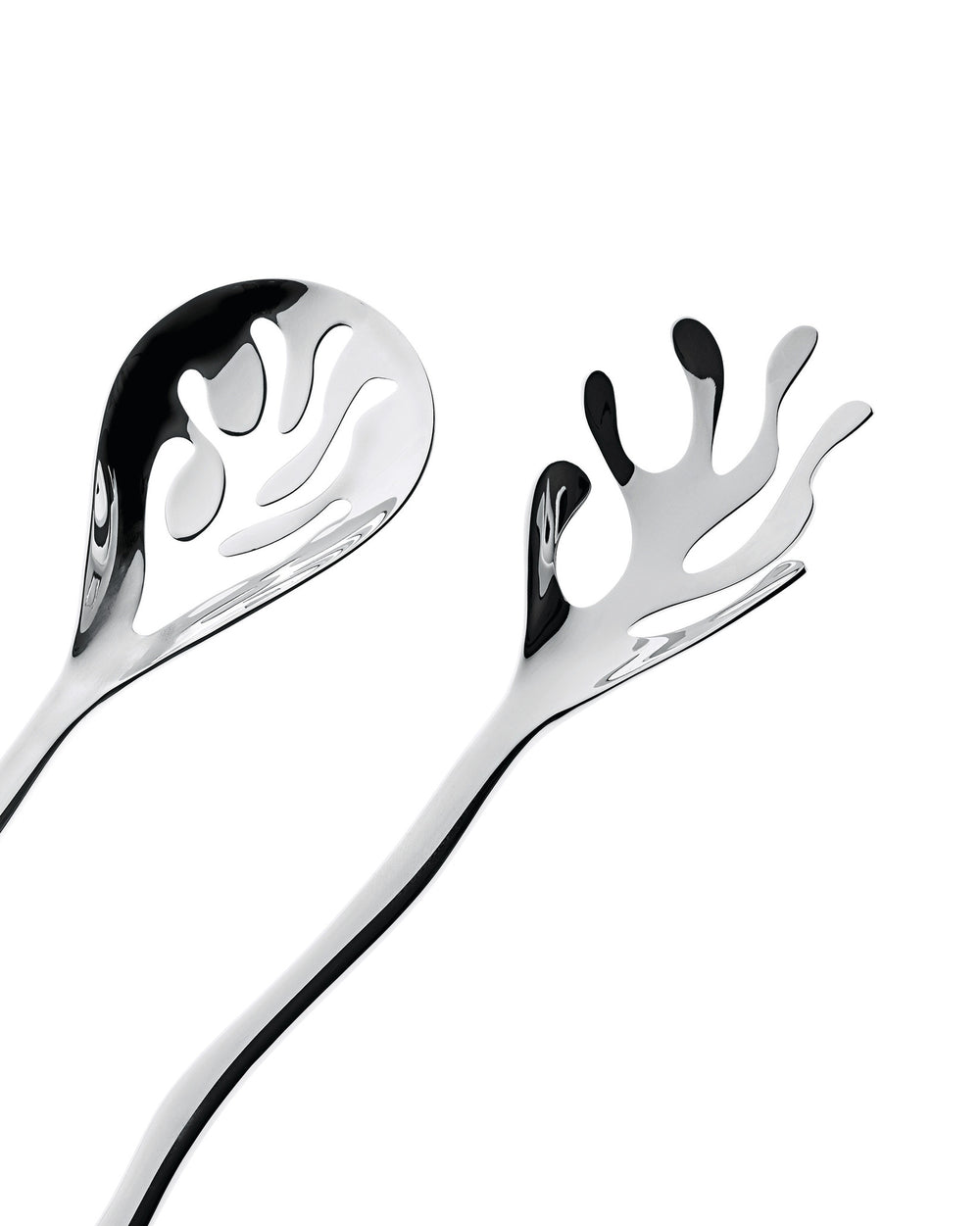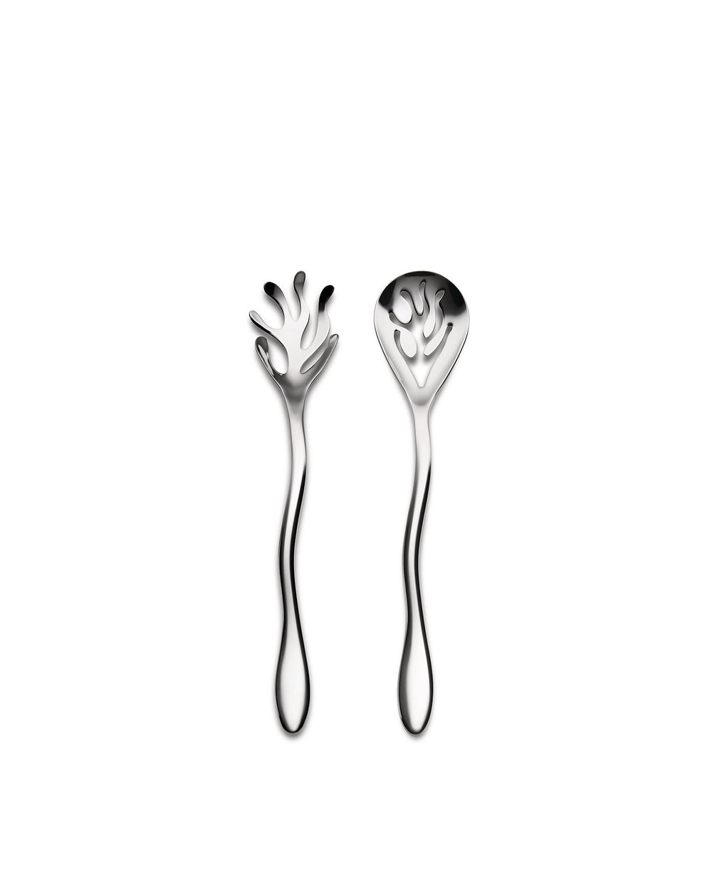 The Mediterraneo decor was born in 2004 during Lightness of Steel, a design workshop curated for Alessi by Laura Polinoro (LPWK). Participants were asked to reinterpret steel in objects that did not communicate physical solidity, and to draw on imagery related to the biological, organic and natural world, which has always been a powerful evocative force when used in objects. Sheet metal fretwork emerged as an ideal way to infuse steel with lightness. Emma Silvestris responded to this challenge with a bold oxymoron, transferring to metal the delicateness of organic coral.