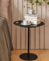 Tray/table, base in coloured steel, top and tray in ABS, black.