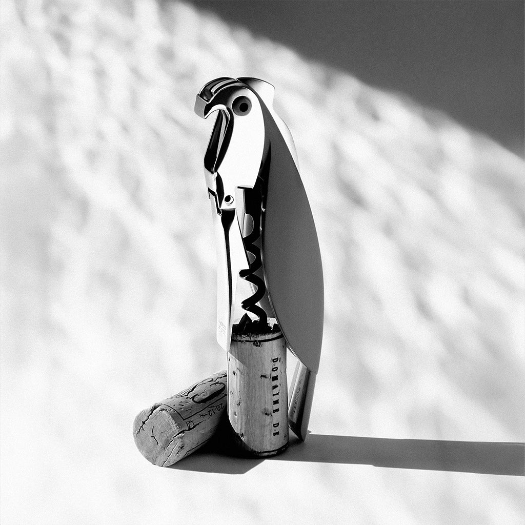 "In my design I tend to introduce elements of organicness, emotional elements, which are not directly related to the reasoning of the functional organization of living." Alessandro Mendini, with this corkscrew parot, symbolic heir to the famous couple Anna G. and Alessandro M., reminds us that design also fulfills its function when it can give us the gift of unexpected joy. In this case, a small surprise that the sommelier keeps in his pocket, capable of transforming, with clever imagination, a utensil of our daily life into a pleasant novelty.