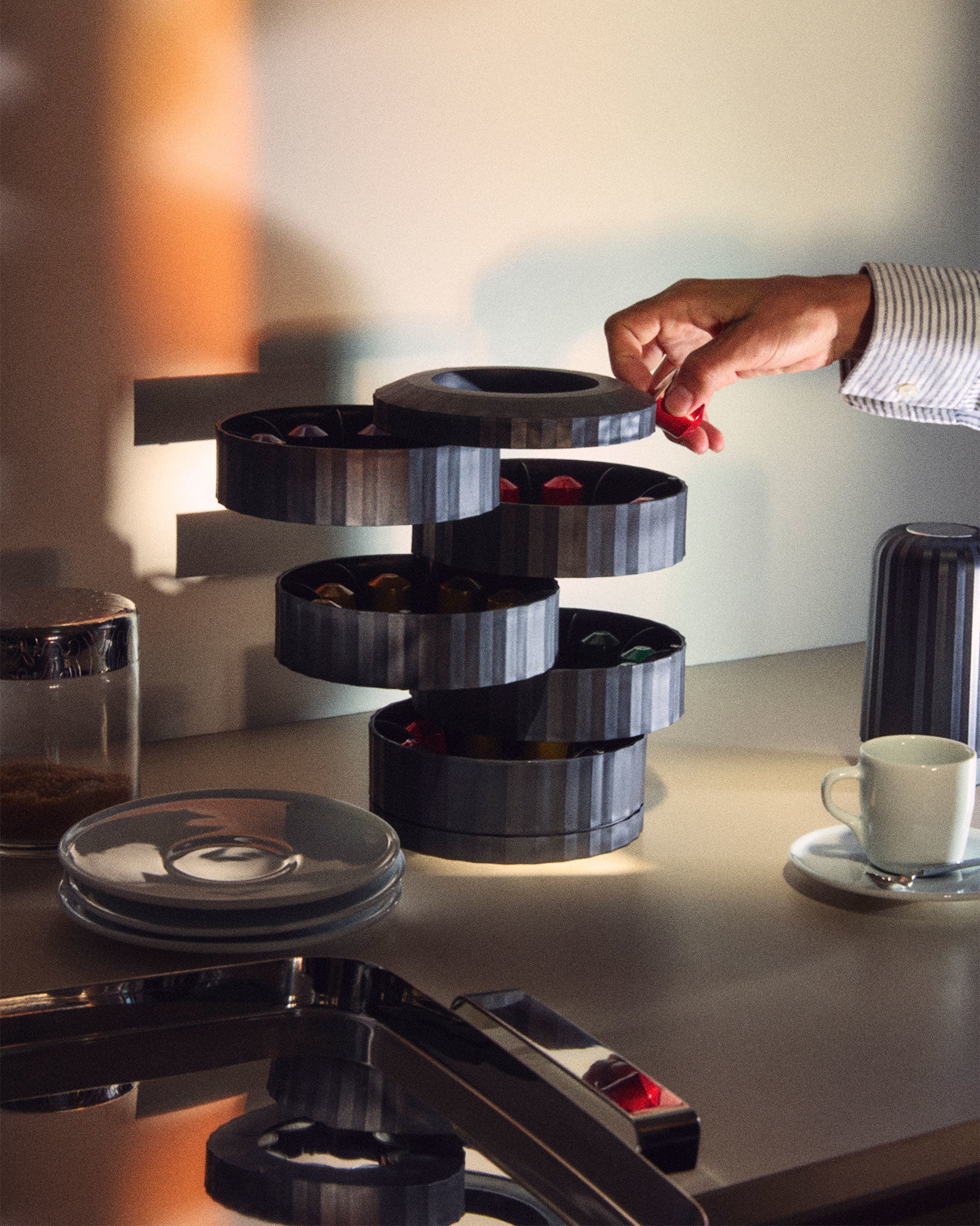 The iconic high fashion pleated fabric clothes the series of small electrical appliances designed by Michele De Lucchi. The Plissé collection gives the domestic environment a touch of refined lightness.