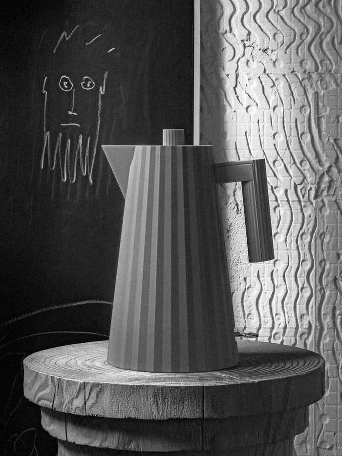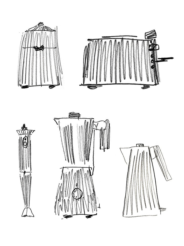 The iconic high fashion pleated fabric clothes the series of small electrical appliances designed by Michele De Lucchi. The Plissé collection gives the domestic environment a touch of refined lightness.