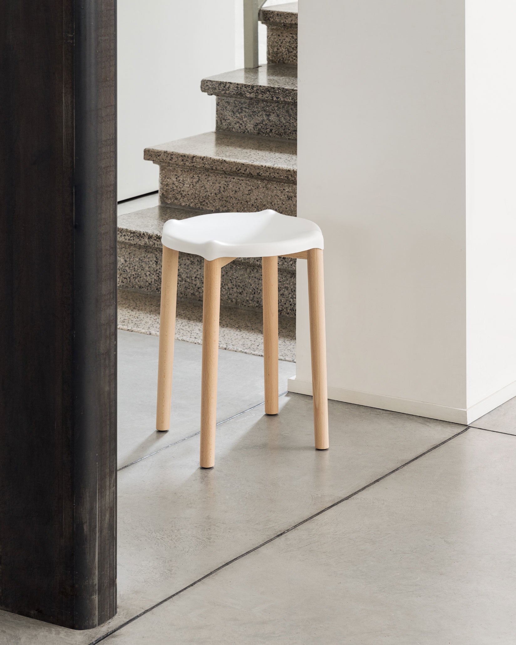 The Poêle Collection showcases Alessi's skill in working with steel. The result is a series of chairs and stools with a strong identity, the design of which communicates with the formal lightness of the coat stand.