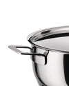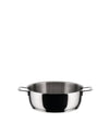 Low casserole with two handles in 18/10 stainless steel mirror polished. Magnetic steel bottom suitable for induction cooking.