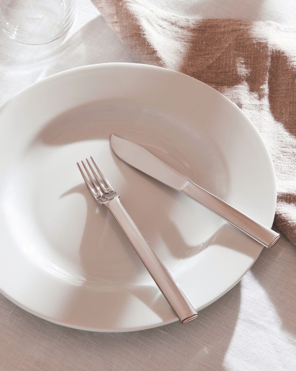Designed by Josef Hoffmann in 1906, the Rundes Modell cutlery fully respected the design guidelines of the Wiener Werkstätte, of which the designer was one of the founders: functionality and practicality together with the refined processing of the materials. Alessi reissued a version of this historic service in 18/10 stainless steel.